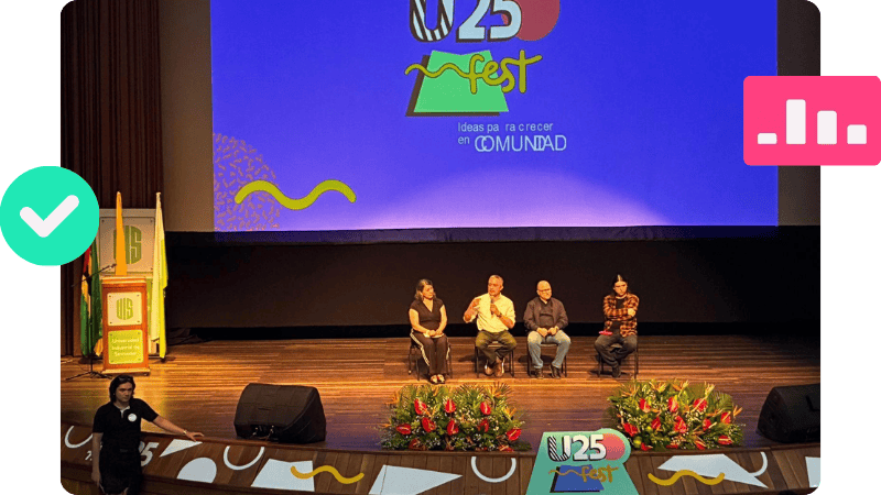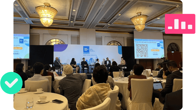 Održavajte interesovanje učesnika tokom glavnih predavanja i sesija u manjim grupama putem anketa uživo, pitanja i odgovora i povratnih informacija u realnom vremenu.