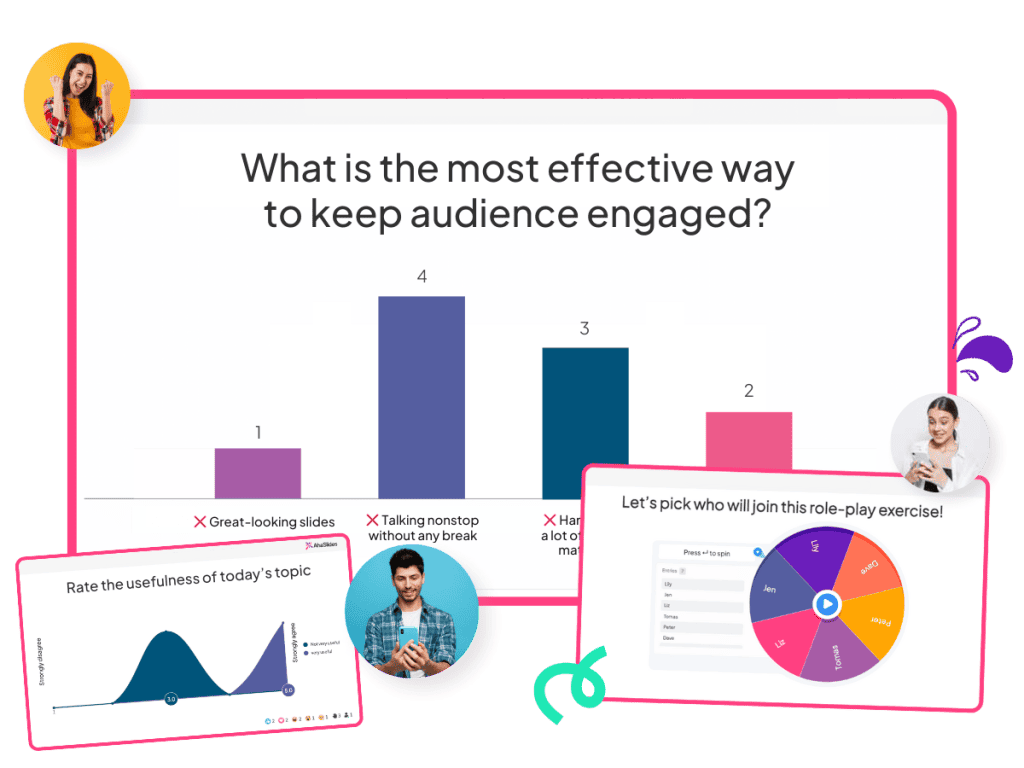 Vaša publika je umorna od tradicionalnih slajdova. Zadržite njihovu pažnju uz ankete uživo, kvizove, pitanja i odgovore, oblake riječi i timske igre. Učinite ih dijelom emisije.