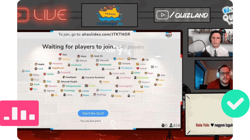 Az AhaSlides nagy közönséget képes kezelni – több tesztet is elvégeztünk annak biztosítására, hogy rendszerünk képes legyen kezelni. Ügyfeleink arról is beszámoltak, hogy probléma nélkül lebonyolították a nagy rendezvényeket (több mint 10,000 XNUMX élő résztvevővel).