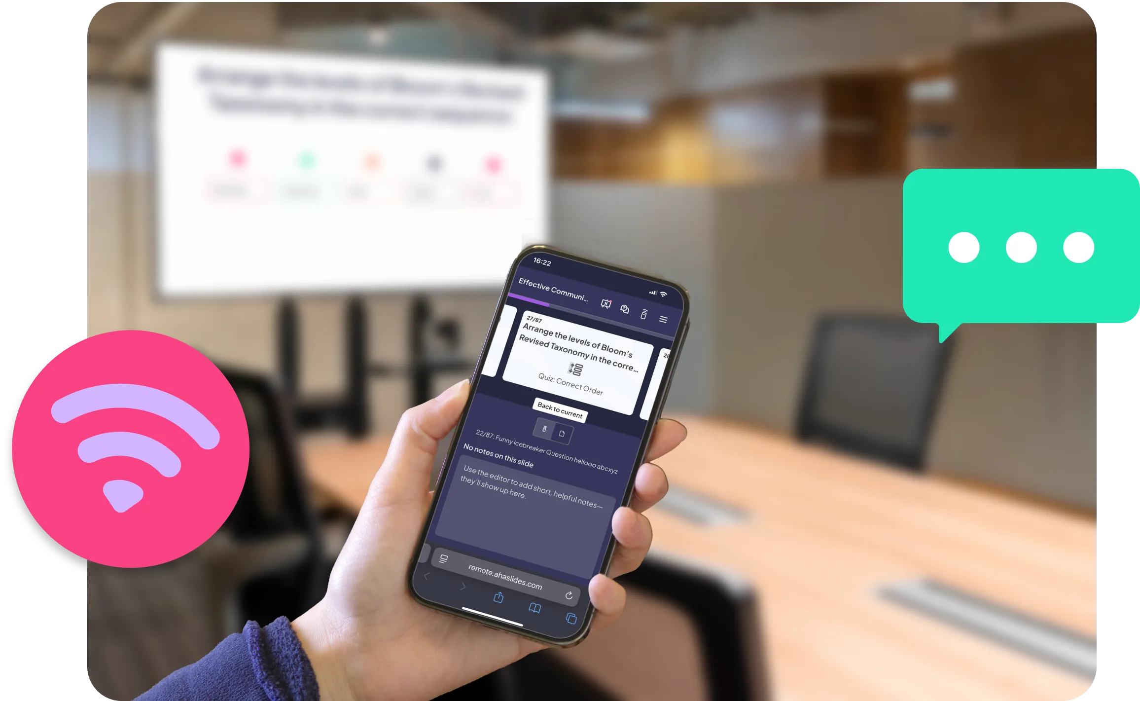 휴대폰을 Q&A 관리, 설정 조정, 슬라이드 탐색이 가능한 믿음직한 슬라이드 진행기 및 프레젠테이션 리모컨으로 바꿔보세요.