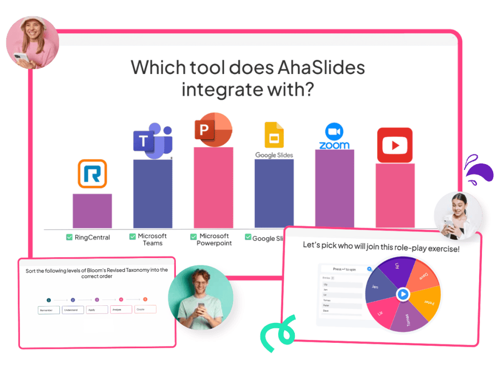 Your audience is tired of traditional slides. Keep them involved with live polls, quizzes, Q&A, word clouds, and team games. Make them part of the show.