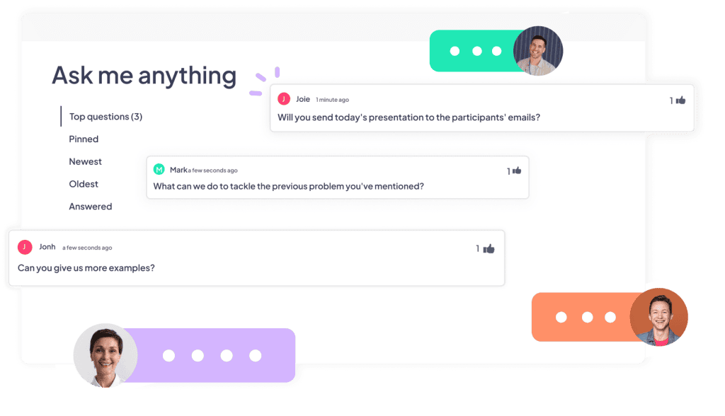 Stħarriġ anonimu u Q&A f'ħin reali jagħmluha faċli għal kulħadd biex jikkontribwixxi - b'mod miftuħ u komdu.