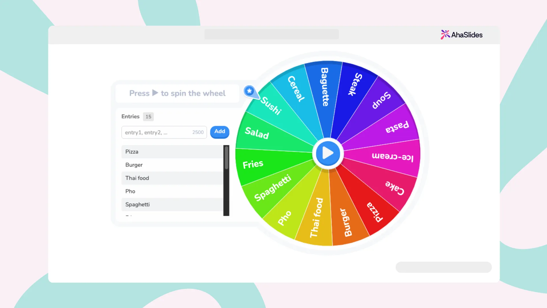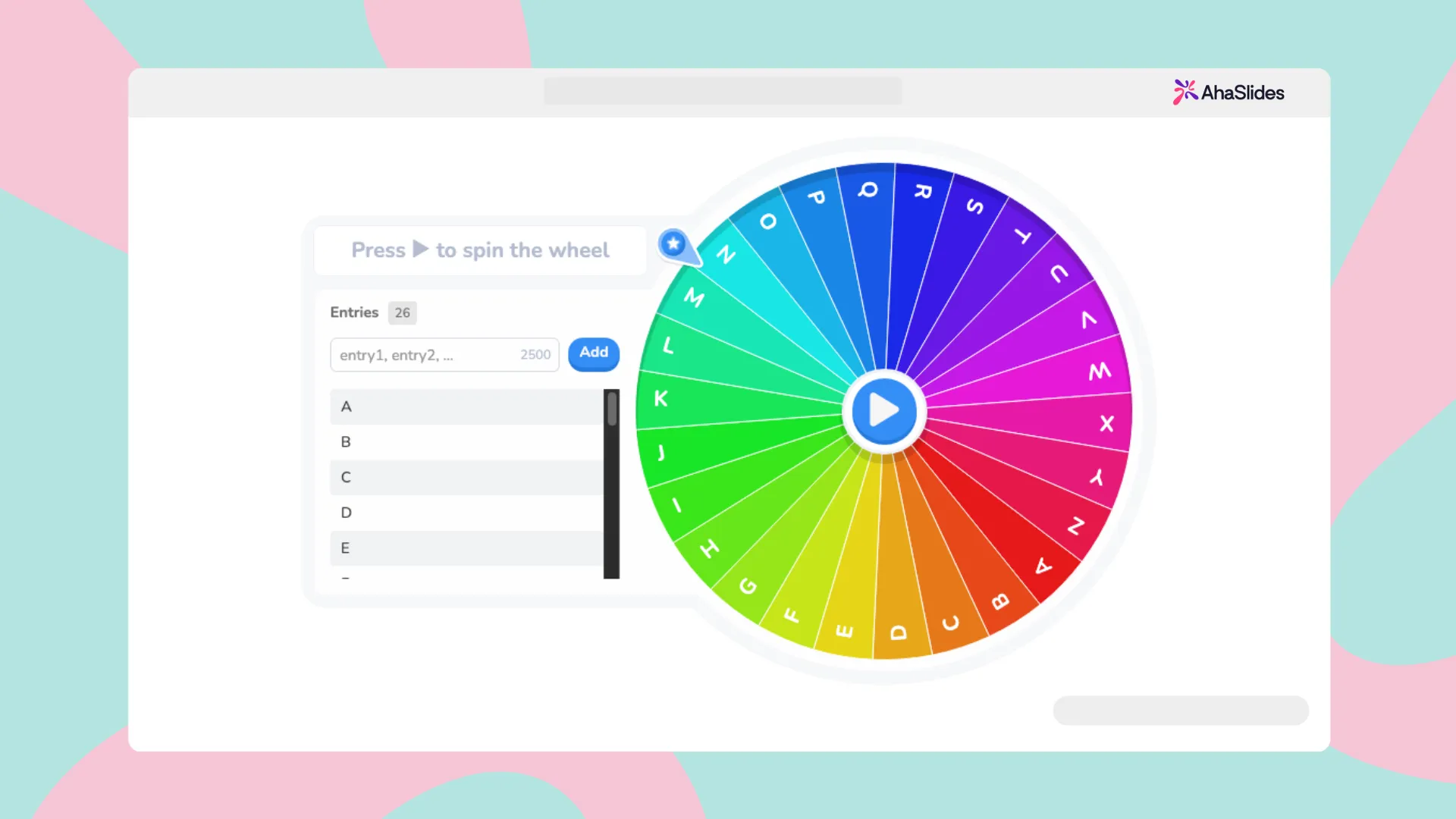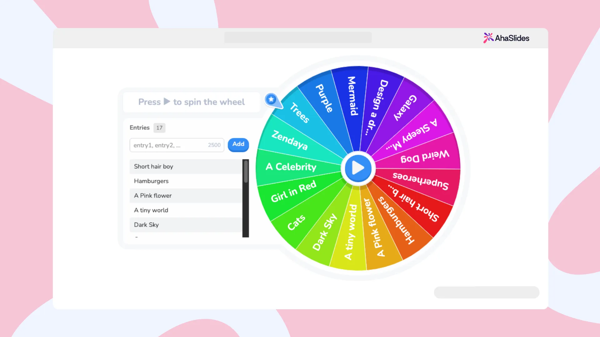 ရွေးချယ်မှုများကြားတွင် ပိတ်မိနေပါသလား။ AhaSlides Yes သို့မဟုတ် No Wheel သည် ခက်ခဲသောဆုံးဖြတ်ချက်များကို စိတ်လှုပ်ရှားဖွယ်အခိုက်အတန့်များအဖြစ်သို့ ပြောင်းလဲပေးသည်။ လှည့်ဖျားရုံဖြင့်၊ စာသင်ခန်းလှုပ်ရှားမှုများ၊ အဖွဲ့အစည်းအဝေးများ သို့မဟုတ် ကိုယ်ရေးကိုယ်တာအကျပ်အတည်းများအတွက်ဖြစ်စေ သင့်အဖြေကို ချက်ချင်းရယူလိုက်ပါ။
