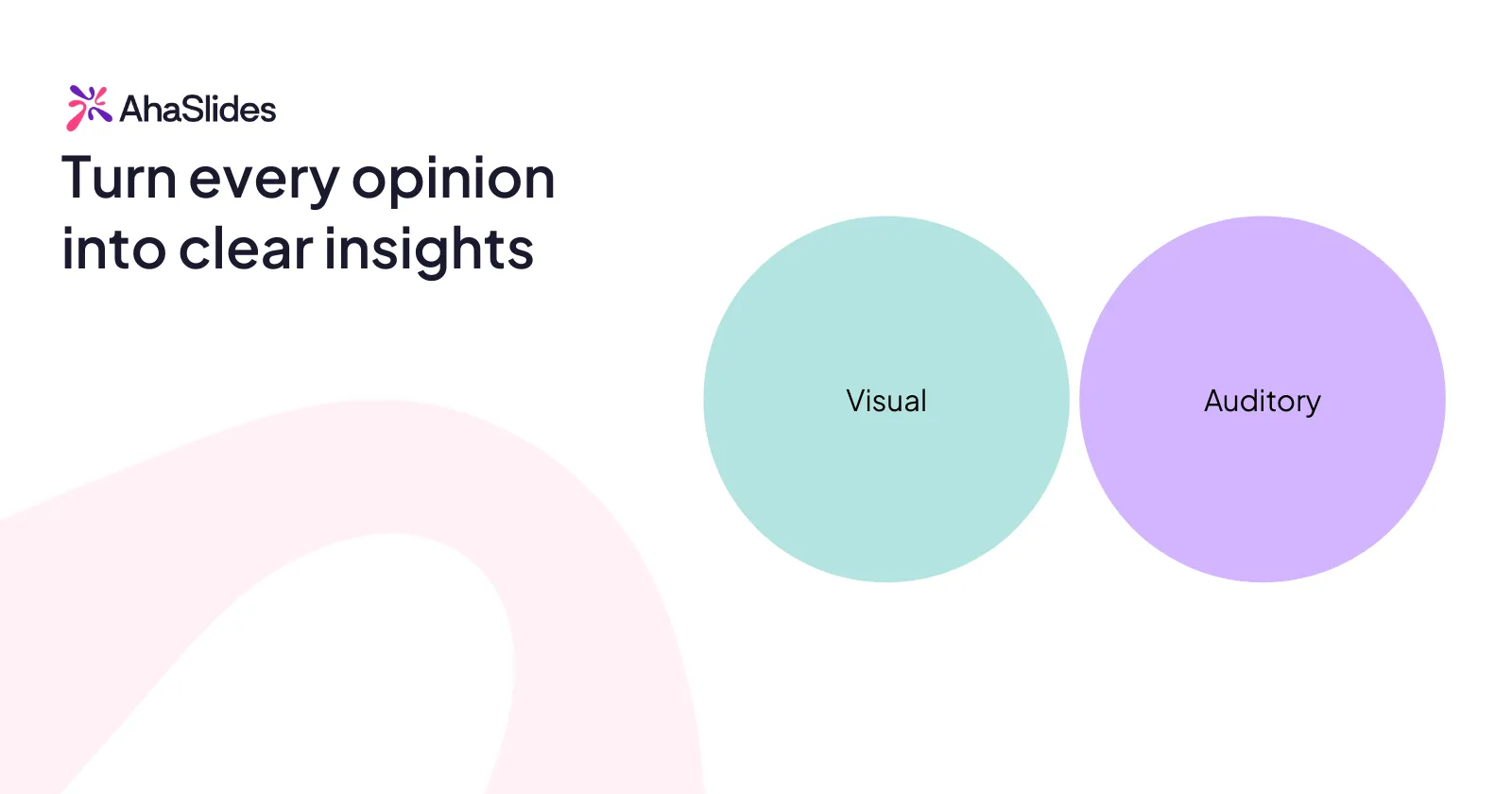 Tools like AhaSlides make these pattern breaks seamless. You can insert live polls, quizzes, word clouds, and Q&A sessions directly into your PowerPoint or Google Slides presentation. Your audience responds from their phones, results appear on screen in real time, and the energy in the room shifts from "listening" to "participating."