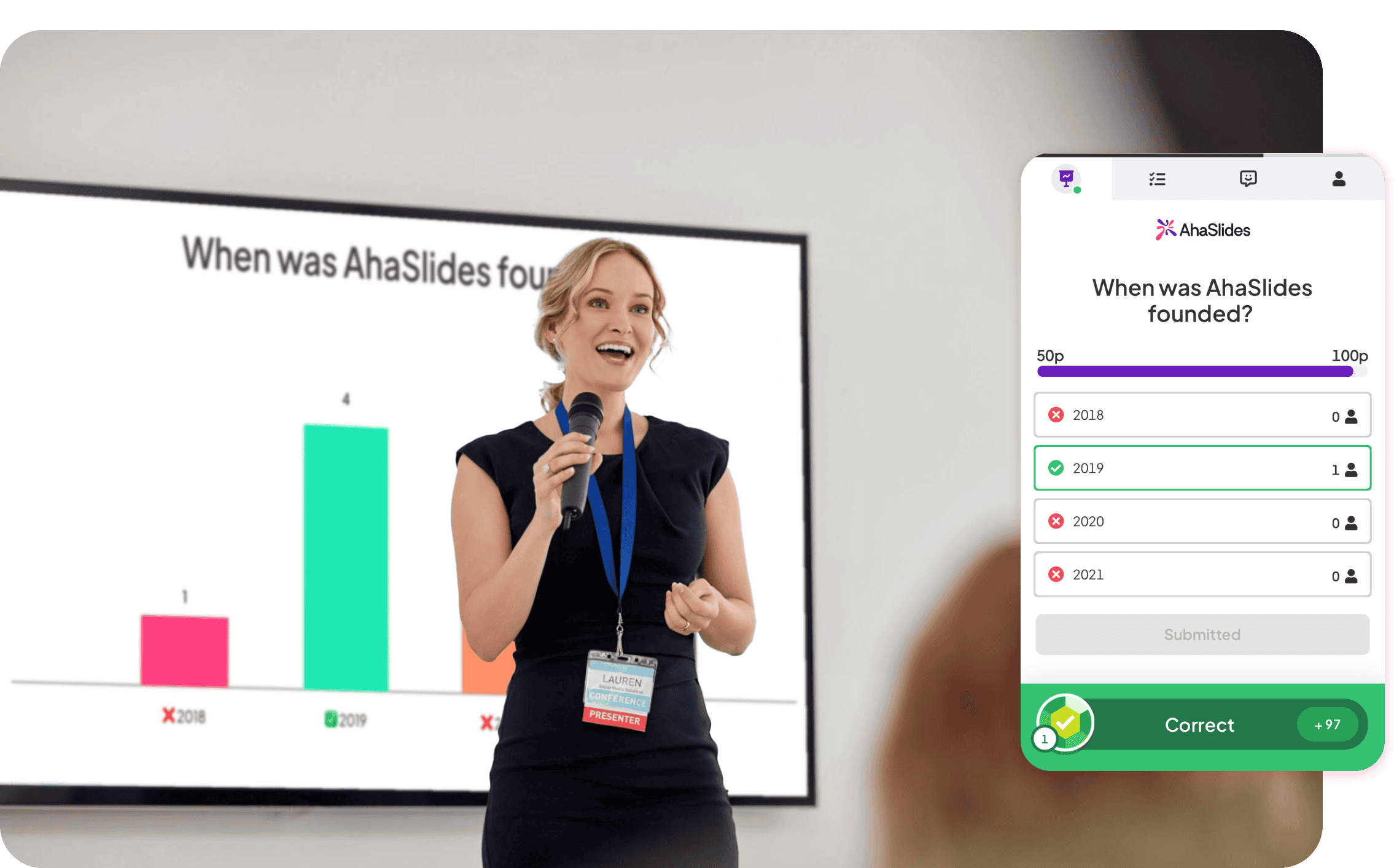 Uporaba AhaSlides kot brezplačni spletni izdelovalec predstavitev se zdi, kot da s seboj v predstavitev pripeljete občinstvo. Ta raven interakcije je fantastična za ohranjanje pozornosti in angažiranosti občinstva.