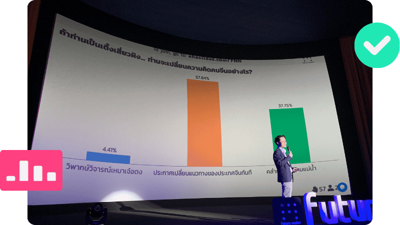 AhaSlides מאכט יעדע פרעזענטאציע לעבעדיג און האלט די צוהערער באמת פארנומען. איך האב ליב ווי גרינג עס איז צו שאפן אנקעטעס, קוויזן, און אנדערע אינטעראקציעס - מענטשן ענטפערן גלייך!